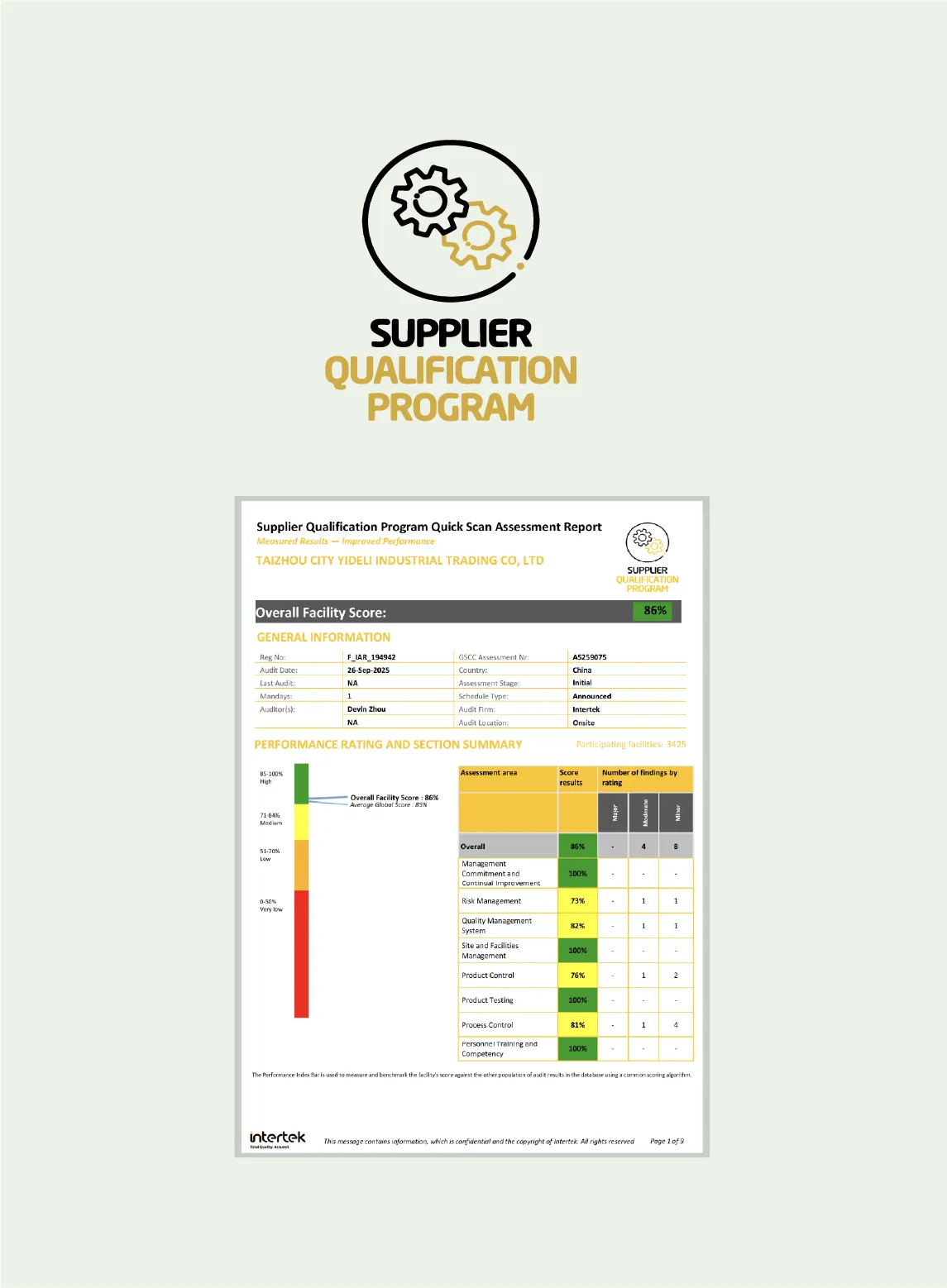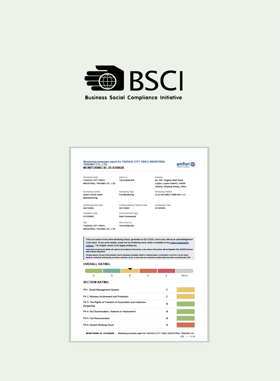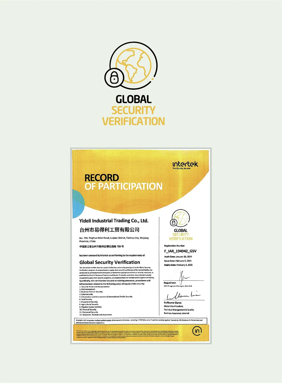 YIDELI is dedicated to sustainable growth and upholds the highest standards of quality and corporate responsibility. Our commitment is validated by key international certifications and audits recognized for global trade, including ISO 9001, ISO 14001, FSC, and social compliance audits such as BSCI, SEDEX, GSV, WCA, and SQP.